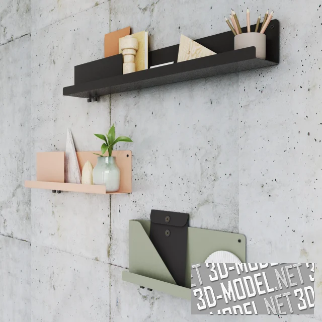 Полки различаются размерами и высотой бортов, что позволяет использовать их как по отдельности, так и в композиции. Модель Large подойдет для длинных стен и хранения более крупной канцелярии или декора. Medium – универсальный вариант для спальни, кухни или рабочего места. Small – компактная полка с высоким бортом, отлично подходящая для писем, документов или небольших предметов. Габаритные размеры: