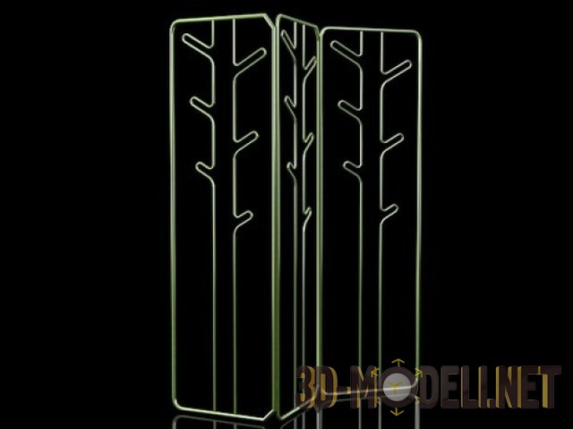 Перегородка Nan 10 Paravent от Nanoo для Faser-Plast, Швейцария. Такое интересное решение для модели придумал дизайнер Fabio Biancaniello. 3d-модель Nan 10 Paravent представляет собой нечто среднее между отдельностоящим шкафом, гардеробом и перегородкой. Отдельные элементы могут быть соединены без использования инструментов. Стальная трубка с порошковым покрытием, составляющая основу модели, может быть различных цветов. Размеры: