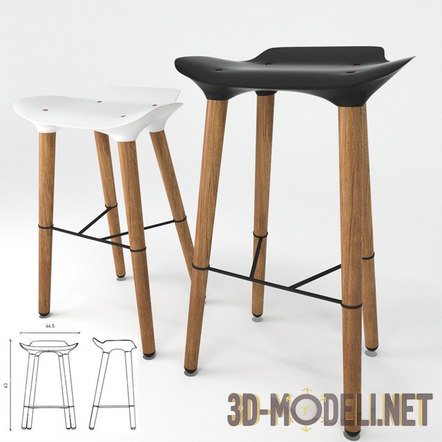 3d-модель современного табурета «Pilot». Материал изготовления: дерево, варианты цвета: белый, черный, слоновая кость, красный. Табурет может быть в стандартном для сидения и барном размере по высоте.