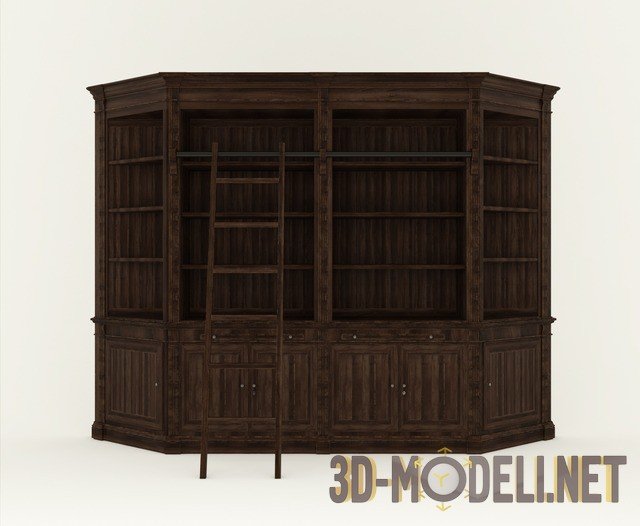 Большой шкаф для реализации домашней библиотеки Athens Library. В сцене присутствует сам шкаф и лестница. Материалы настроены, текстуры есть. В комплекте три модели с разной текстурой дерева: Tuxedo Black, French White, Cigar Brown, что позволяет использовать этот шкаф в различных интерьерах.