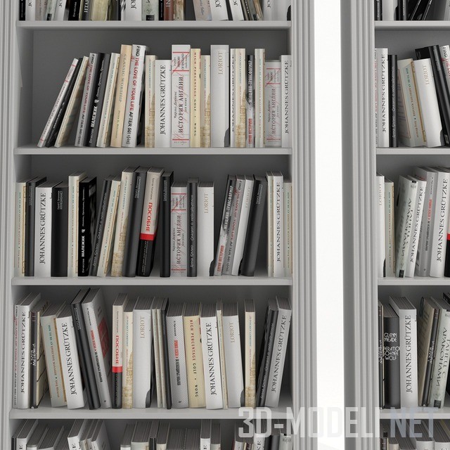 Книжный шкаф в классическом стиле, довольно простой формы, авторский дизайн. За стеклянными дверцами несколько полок, плотно заставленных книгами. Стеллажи могут быть выполнены в пяти вариантах цвета, в зависимости от цветовой палитры разрабатываемого интерьера. Высота шкафа составляет 3 метра.