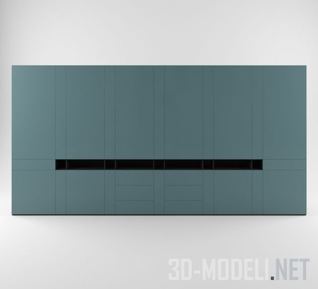 Шкаф-купе, предназначенный для установки во всю стену. Шкаф дизайнерский, красивого цвета, с темной вставкой. Эту модель хорошо использовать в современном интерьере спальни.