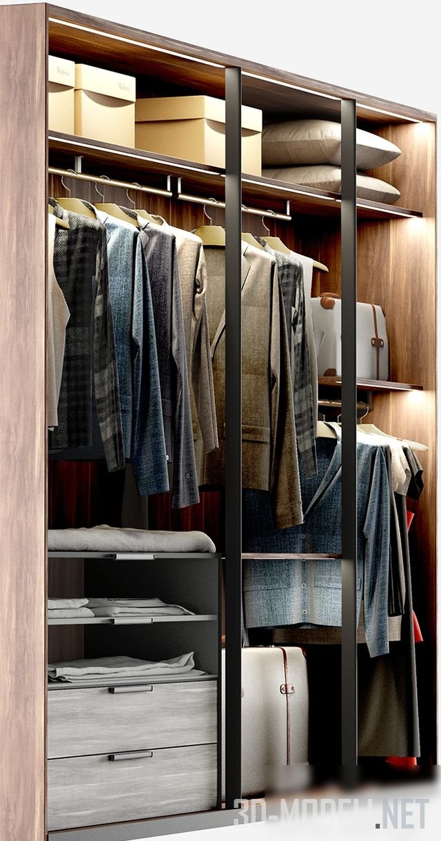 Современный гардероб Gliss Master от итальянского бренда, с набором различной одежды, коробками, подушками и пр. Удобная и функциональная мебель. Трехмерная копия выполнена с вниманием к деталям и с учетом особенностей и характеристик оригинала.