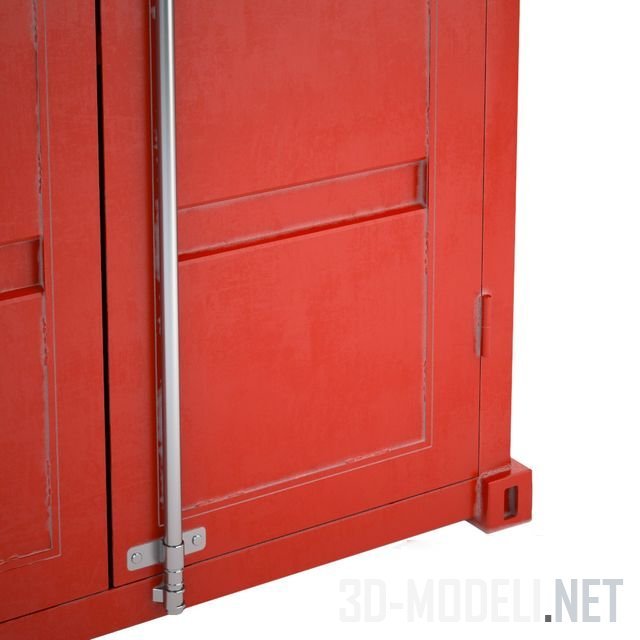 Стильный платяной шкаф в стиле лофт от Loft-ART. Выполнен в виде металлического грузового контейнера для морских перевозок. Соблюдены все стилистические особенности контейнеров: вертикальная наружная штанга замка, трафаретные надписи на фасадах, рельеф поверхности. Модель представлена в четырех цветах: красном, синем, зеленом и желтом.