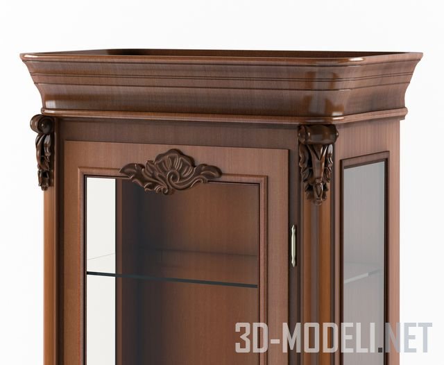 Однодверный шкаф-витрина BN 8801 из коллекции Benedetta, выполнен в стиле модерн из массива дерева цвета темного ореха. За застекленными дверями размещены три стеклянные полки. Боковые фасады также имеют стеклянные вставки. Корпус шкафа и небольшие ножки украшены резьбой.