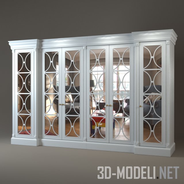 Шкаф для классического интерьера. Зеркальные декорированные фасады смотрятся очень интересно. Шкаф представлен в вариантах цвета и трех размерах: 820 x 810 x 2500 мм, 1360 x 710 x 2500 мм, 1890 x 710 x 2500 мм.