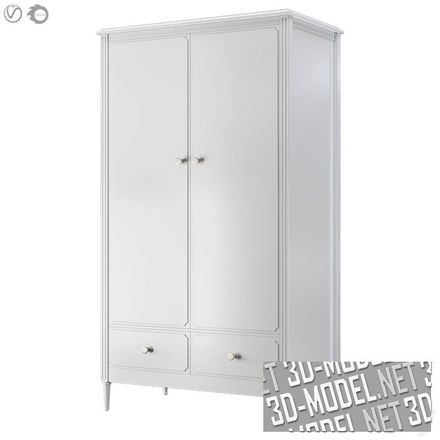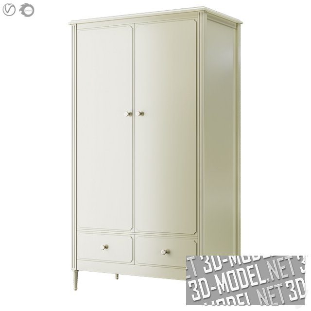Аккуратный гардеробный шкаф Elit от Ellipse в классическом стиле. Вертикальные ребра шкафа декорированы фрезерованными канавками. На фасадах - лаконичная рамка с фигурными углами. Ручки-пуговки - серебристые, металлические. Корпус шкафа размещен на невысоких ножках. Шкаф представлен в четырех цветах: белом и пастельных бледно-голубом, бледно-розовом и бледно-фисташковом.