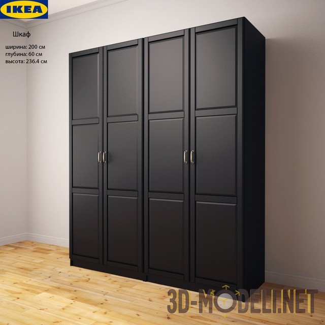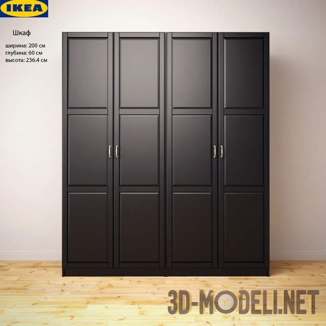 3D-модель шкафа от IKEA – «Ундредаль». Гардероб насыщенного, черно-коричневого цвета, артикульный номер 890.960.61. Габаритные размеры шкафа: