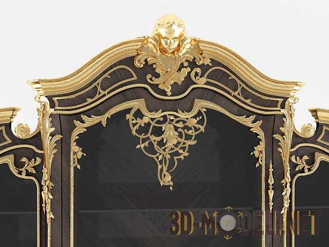 3d модель украшенной золотыми элементами витрины на ножках. Мебель с богатым декором, очень украсит собой классический интерьер. Все текстуры находятся в архиве.