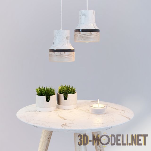 Круглый стол Dodo, в комплекте с подвесным светильником и декоративным набором. Использование таких простых материалов, как бетон и дерево, а также травы в качестве растительного акцента делает этот комплект идеальным вариантом для любого современного пространства. Светильник имеет диаметр 100 мм, высота его 120 мм. Стол в диаметре равен 450 мм, высота составляет 540 мм