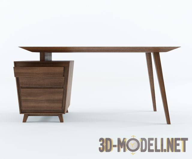 Деревянный письменный стол, сочень легким и современным дизайном. Его динамичная конструкция смотрится воздушно, но при этом отличается функциональностью: тумба на колесиках, с выдвижными ящиками, позволяет удобно разместить все необходимые для работы или учебы принадлежности.
