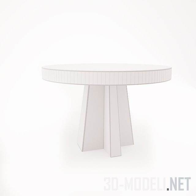 Деревянный столик с толстой круглой столешницей светло-коричневого цвета и как бы тройной ножкой, расположенной под центром столешницы.