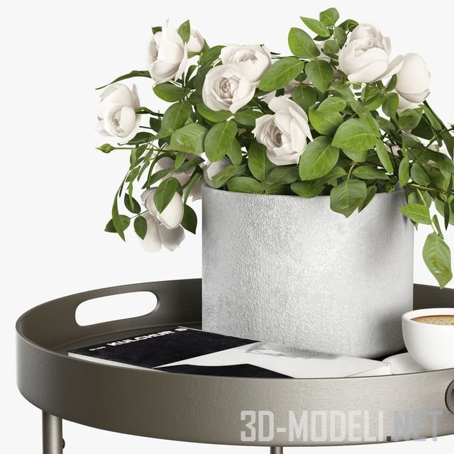 Изящный столик Palmer Tray от Pottery Barn, в комплекте с вазой и букетом роз, чашкой кофе и книгами.