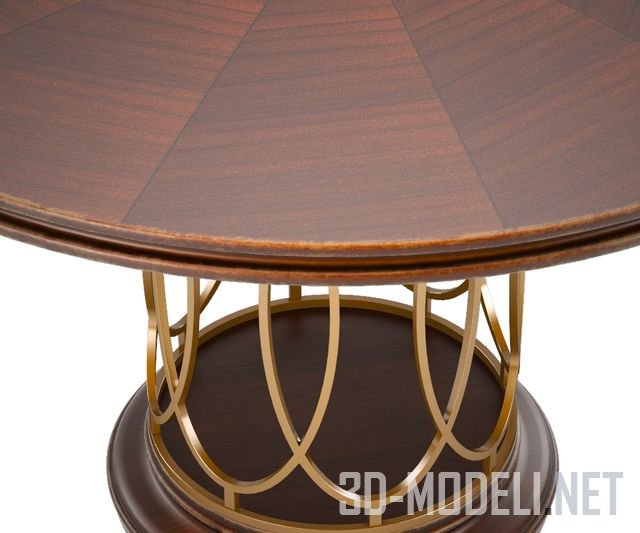 Красивый обеденный стол Neo Deco из коллекции Avalon Heights от американского бренда Stanley Furniture. Овальная столешница красивого коричневого цвета сделана из древесины вишни. Стол стоит на ажурном кованом металлическом основании золотистого цвета.