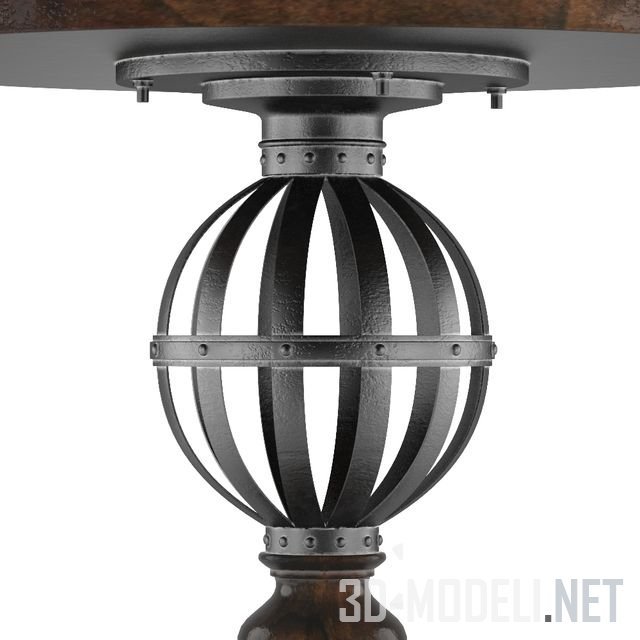 Оригинальная модель стола в стиле европейского фермерского дома или провансальского сада. Конструкция стола с круглой деревянной столешницей и коваными железными элементами на ножке настолько интересна, что может с успехом применяться и в интерьере в стиле лофт.