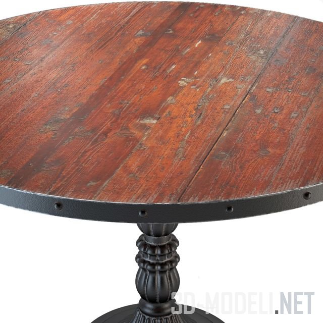 Круглый обеденный стол размером 47 дюймов, модель French Soda Fountain. Стол изготовлен вручную из твердого регенерированного и утилизированного дерева. В основании чугунного пьедестала черного цвета орнамент из спиралевидных завитков. Такой стол, напоминающий французский фонтан конца 1800-х годов, сочетает в себе современную функциональность и исторический скульптурный дизайн.