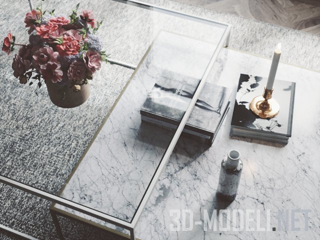 Современные кофейные столики из коллекции Tati от ASPLUND и дизайнеров Broberg & Ridderstrale. Первый стол с белым металлическим каркасом и квадратной стеклянной столешницей. Второй пониже, с черным каркасом и столешницей из белого с серыми прожилками мрамора. Столики разработаны так, что могут интегрироваться один под другой, меняя общую полезную площадь столешниц.