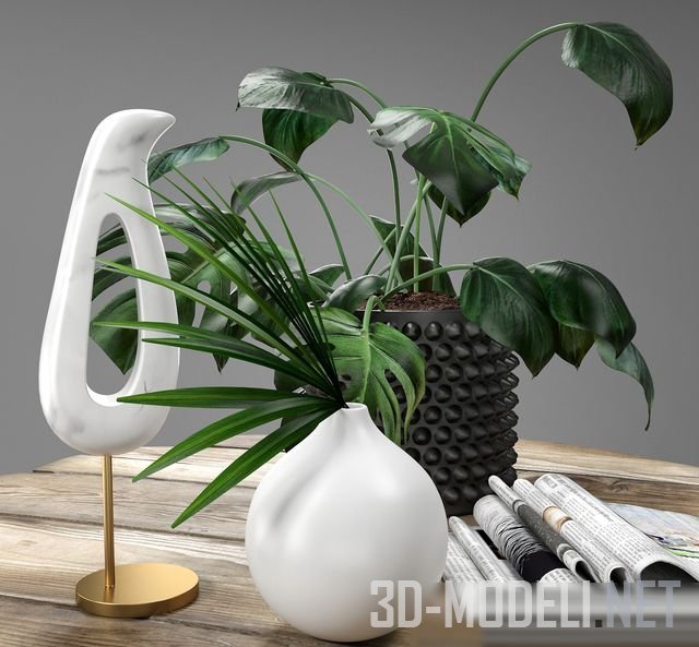 Эксклюзивный кофейный столик Beam от Van Rossum является основой этой композиции. Дополняют его растения (монстера и драцена), а также декоративная птица и пресса. Все элементы гармонично взаимодействуют между собой, образуя реалистичный набор для украшения интерьера.