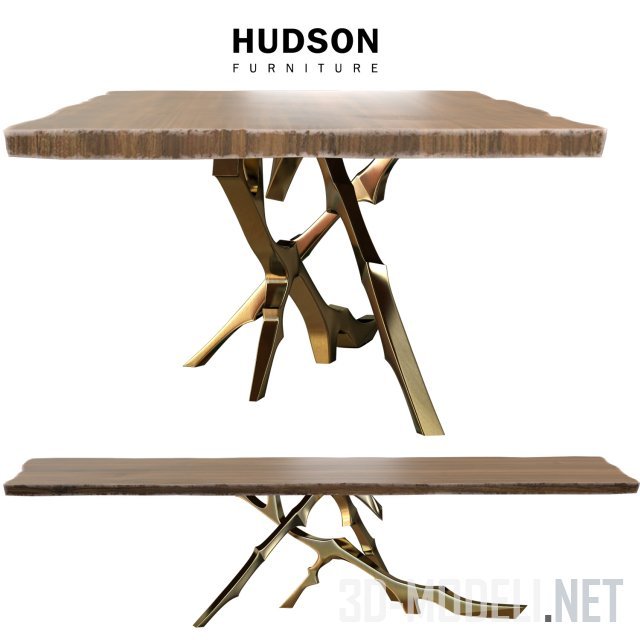 Оригинальный столик GROLIER от Hudson Furniture, с фигурной ногой из латуни. Опора выполнена в виде трех стилизованных веток. Прямоугольная столешница декорирована рустикальной кромкой, имитирующей грубый спил старого дерева.