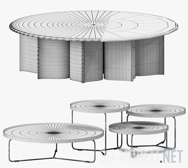 Журнальные столики Billy Keramik от бренда Cattelan Italia, размеры 60 х 28, 60 х 38, 60 х 48 и 100 х 28см, а также стол Rosace, дизайн Pierre Paulin. Диаметр 100, высота 31 см.