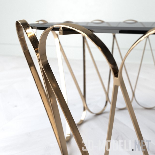 Очень изящный стол AQUARIUS производства Португалия (бренд Boca Do Lobo). Стол имеет овальную столешницу из закаленного дымчатого стекла, которая опирается на основание из переплетенных металлических лент золотистого цвета. Диаметр стола 90 см, высота 40 см.