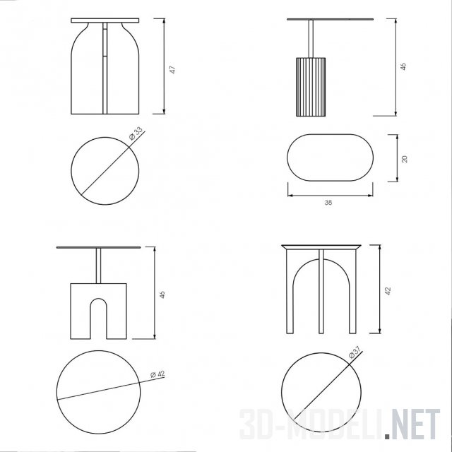 Минималистичные приставные столики Aparentment, набор из четырех вариантов. Каждый стол привлекателен и удобен по-своему, и найдет свое место в современном интерьере.