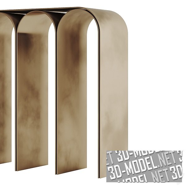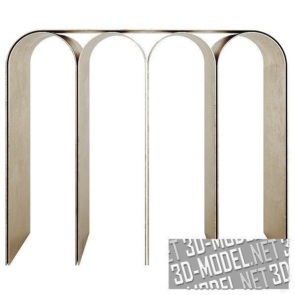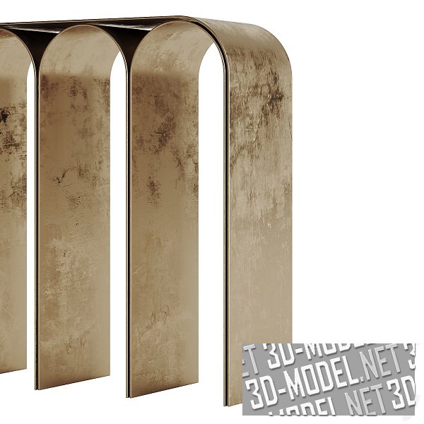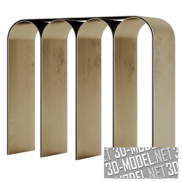 Оригинальный современный консольный столик Golden Arch от Pietro Franceschini из четырех металлических арок, объединенных общим элементом. Габарит конструкции: 30х103х86см. Представлены три варианта отделки: Brass Gold (золотистая латунь); Oxide Scratches Gold (окисленное золото с царапинами); Light Grunge Gold (светлое рустикальное золото).