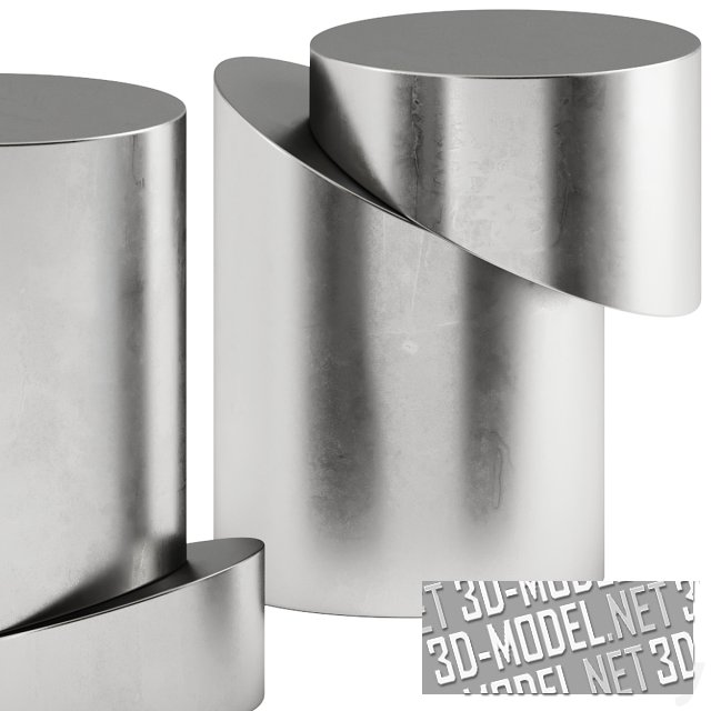 Современные металлические приставные столики из коллекции Slice от Movimento. Выполненные из серебристого металла, столы сделаны в виде цилиндров, разрезанных косым резом, с небольшим смещением асимметричных элементов. Представлены три вариации с небольшой разницей в соотношении элементов и углом среза. Габарит столов: d30/h45см.