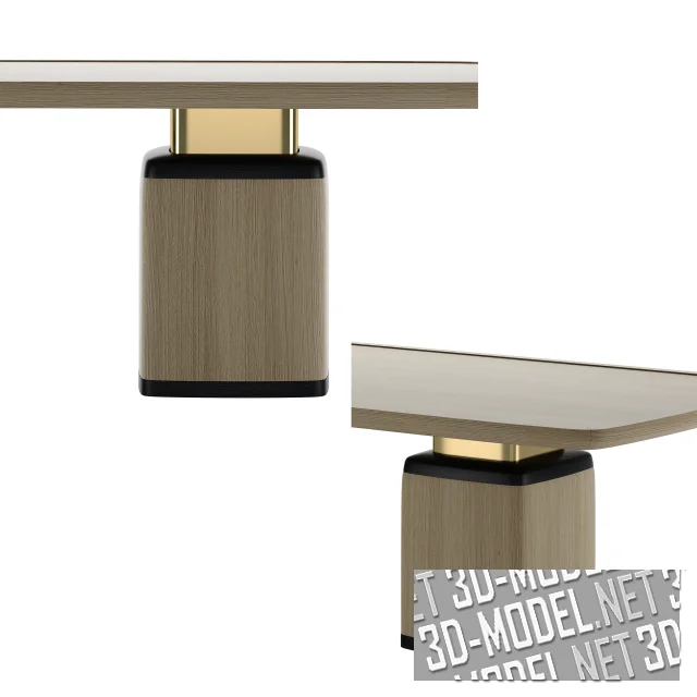 Современный обеденный стол NAGANO (FFU130016AAB) от итальянской фабрики FRATO. Прямоугольная, со скруглениями столешница отделана фигурным профилем, смонтирована на двух мощных тумбах. Тумбы двухъярусные. Основания опор - тумбы квадратного сечения с отделкой из сатинированного дерева с черными окантовками. Тумбы от столешницы отделяют небольшие вставки из золотистого металла. Габарит стола: 280х120х76см.