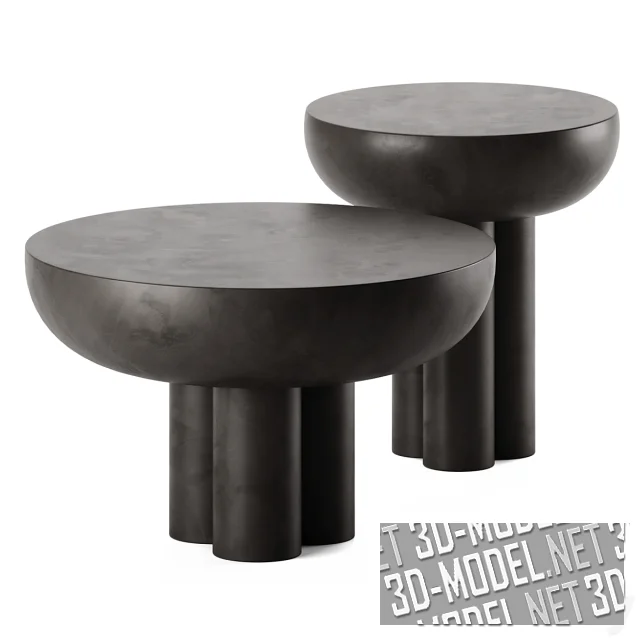 Два типоразмера (d45/h50см и d65/h41см) массивных круглых кофейных столов в современном стиле - CROWN от 101 Copenhagen. Опоры выполнены из трех цилиндров, слитых в общую. На опоре смонтирована массивная столешница в форме чуть сплющенной полусферы с плоской поверхностью. Представлено два варианта: белого и черного цвета.