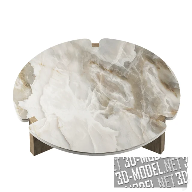 Современный круглый кофейный столик Cosmo round Mia Casa. Верхний слой столешницы выполнен из охристо-серого мрамора. Опоры три. Выполнены из толстых дубовых плит в виде трапеций. Диаметр стола 90см.