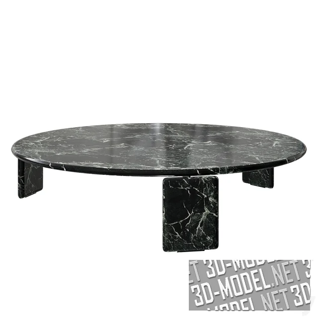 Мраморные кофейные круглые столы Drake от Minotti. Стол в двух вариантах - из черного со светло-серыми прожилками и белого со светло-серыми прожилками мрамора, на трех прямоугольных опорах. Габариты Drake: d130/h30см.
