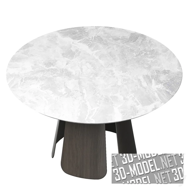 Лаконичный современный обеденный стол Base от Wooddi. Сложная центральная опора состоит из четырех элегантных гнутых «лепестков» со скругленными углами, с текстурой и цветом массива венге. Эти элементы складываются в коническую опору с просветами и усеченной вершиной. Круглая столешница - с текстурой серого мрамора, с фацетированой нижней кромкой. Габарит стола: d130/h74,5см.