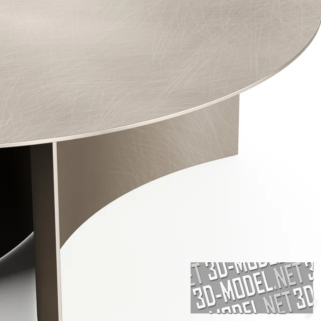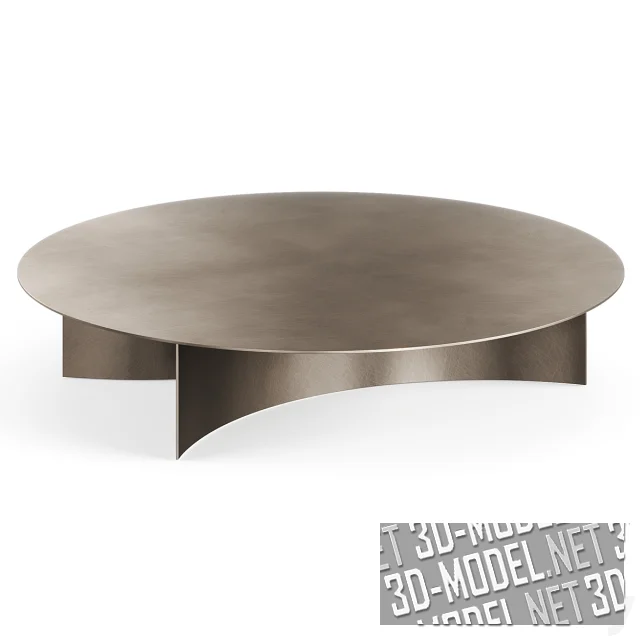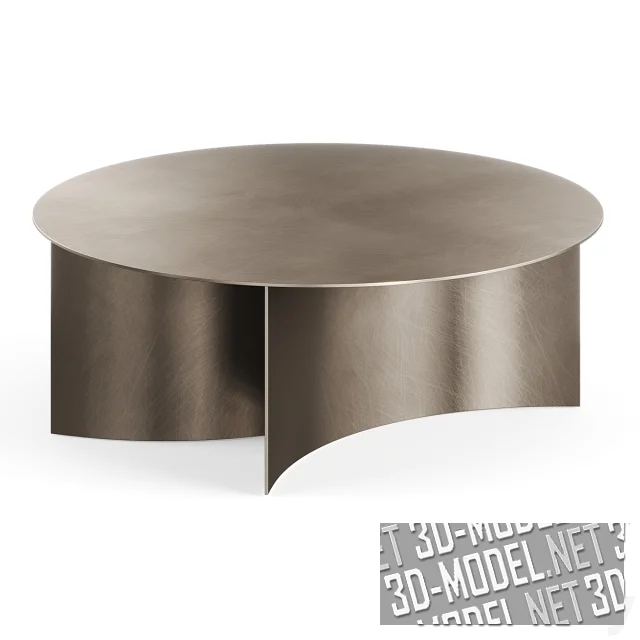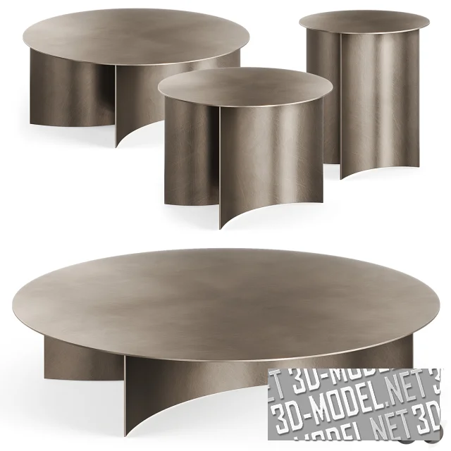 Studio Contromano). Опоры выполнены из двух изогнутых прямоугольных пластин, лежащих на боковой грани и соединенных друг с другом выпуклыми частями. Представлены столы в двух декорах (бледно-серо-коричневого и темно-серебристого цвета) и нескольких типоразмерах (CT45 - d45/h48см; CT60 - d60/h40см; CT90 - d90/h32см; CT120 - d120/h24см). Серо-коричневый металл (оксид) испещрен множеством мелких царапин.