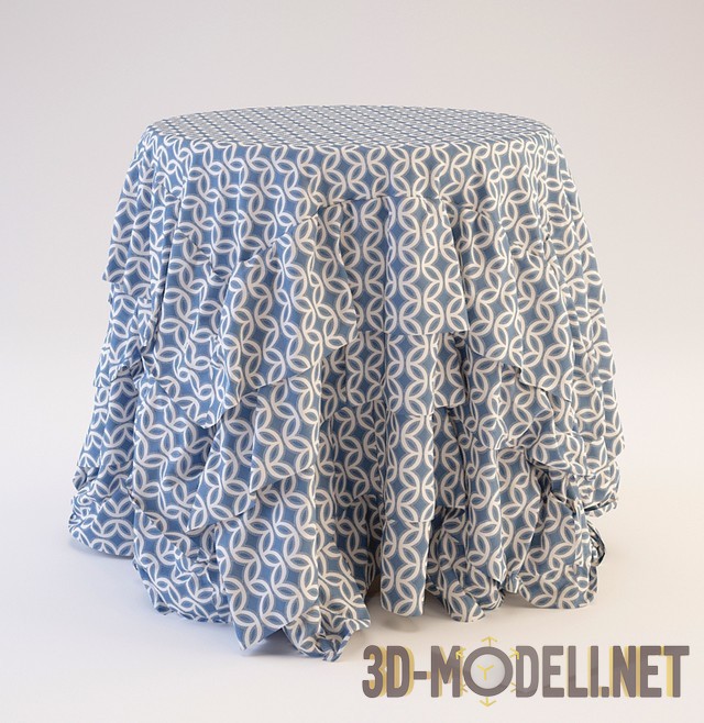 3D модель скатерти с воланами. Мягко ниспадая до самого пола, такая скатерть, которой воланы придают дополнительный объем, сделает любой стол центром внимания. Реалистичная, очень качественная модель, с вариантами текстур в архиве.