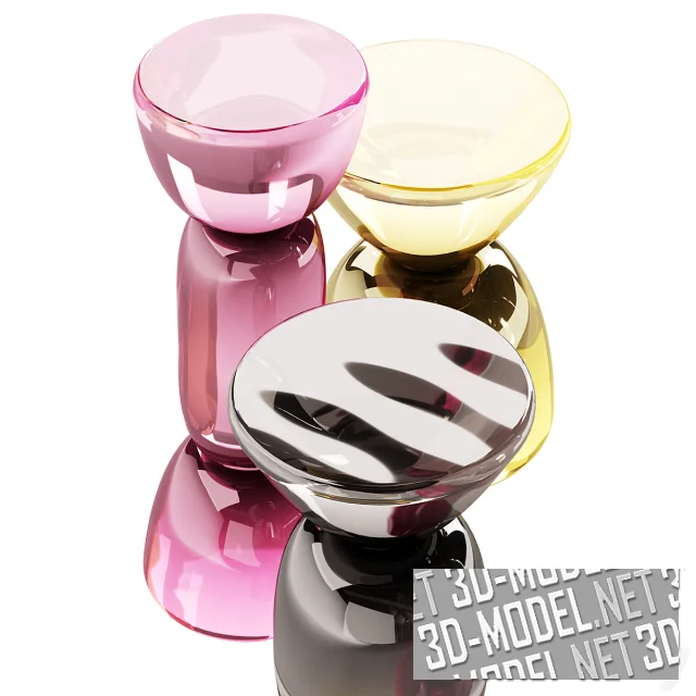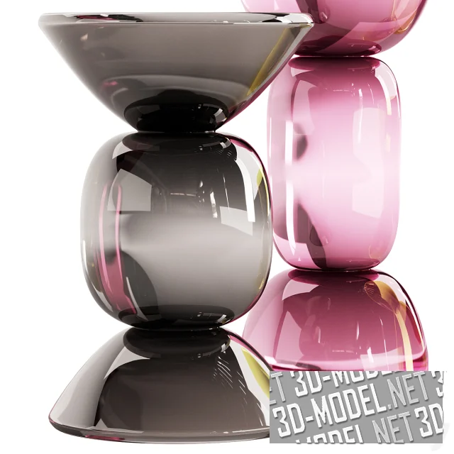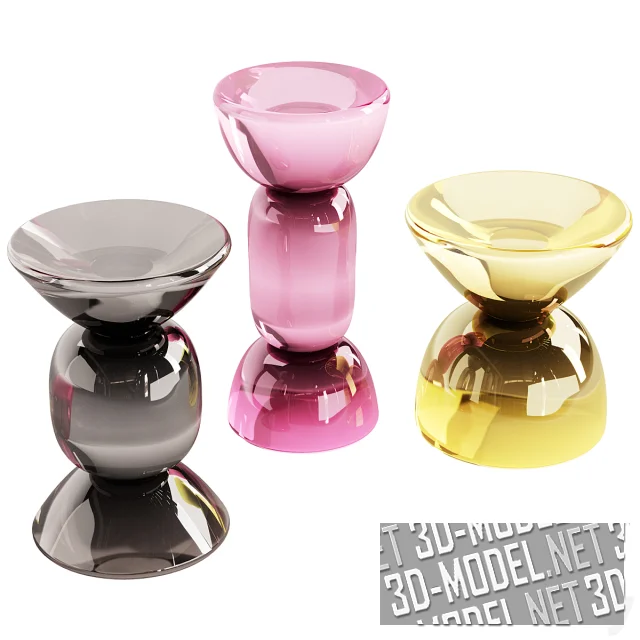 Эти столики Verreum BonBon, разработанные дизайнером Luca Nichetto, создают ощущение легкости и игривости благодаря необычной форме и полностью стеклянному исполнению. Каждая модель состоит из нескольких простых геометрических элементов, собранных в вертикальную композицию, напоминающую конфету или декоративный тотем. Полированное стекло с мягкими градиентами цвета, от дымчатого серого до насыщенного розового и теплого лимонного, делает столы одновременно современными и немного сказочными. Благодаря прозрачности материал красиво ловит свет, и столики становятся ярким акцентом рядом с диваном, креслом или в зоне отдыха. Разные размеры позволяют использовать их как вспомогательные столики, отдельные декоративные пьедесталы или небольшие журнальные столы.
