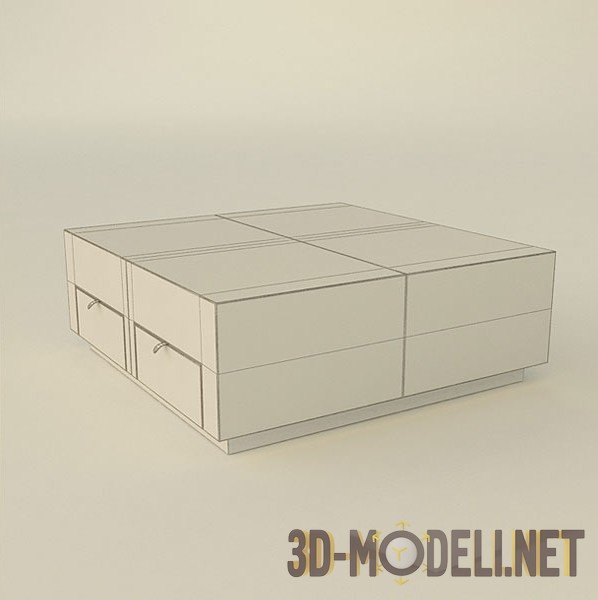 3d-модель кожаного столика-пуфа в современном стиле, от бренда Formitalia. Модель с успехов выступит и в роли журнального столика, и в качестве пуфа. Оснащен ящиками, что придает лишнее удобство и функциональность.