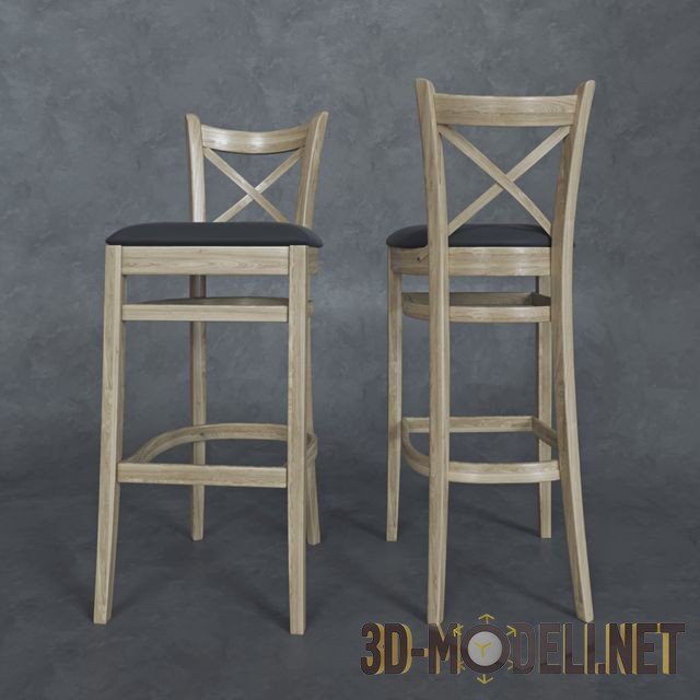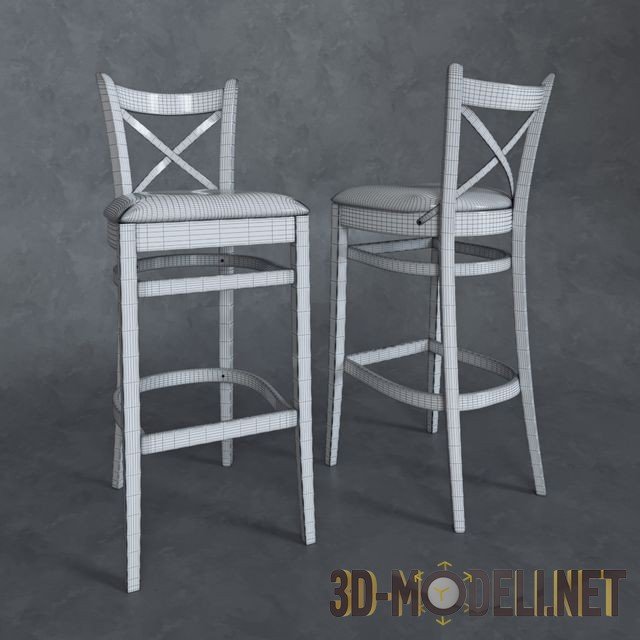 Высокий барный стул Toscana из светлого дерева, с серо–синей обивкой мягкого сиденья. Высокие ножки в двух уровнях соединены перемычками, повторяющими силуэт рамы сиденья. Невысокую спинку украшают диагональные, перекрещенные детали из гнутого дерева. Размеры стула: 110 х 47 х 54 см