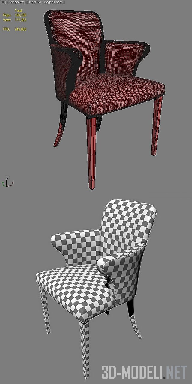 Обеденный стул для классического интерьера столовой, гостиной или кухни, от Michael Berman Limited. В дизайне стула преобладают плавные, изящные линии, что делает его очень гармоничным предметом мебели. Обивка из ткани и декоративные гвоздики придают стулу стильности и комфорта. Размеры стула: 635 х 685 х 838 мм. Модель высокого качества, с настроенными материалами и текстурами в архиве.