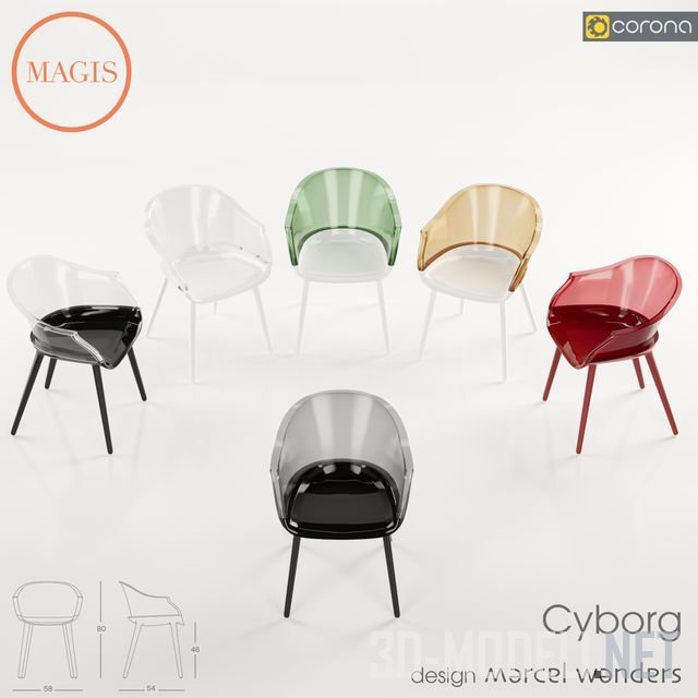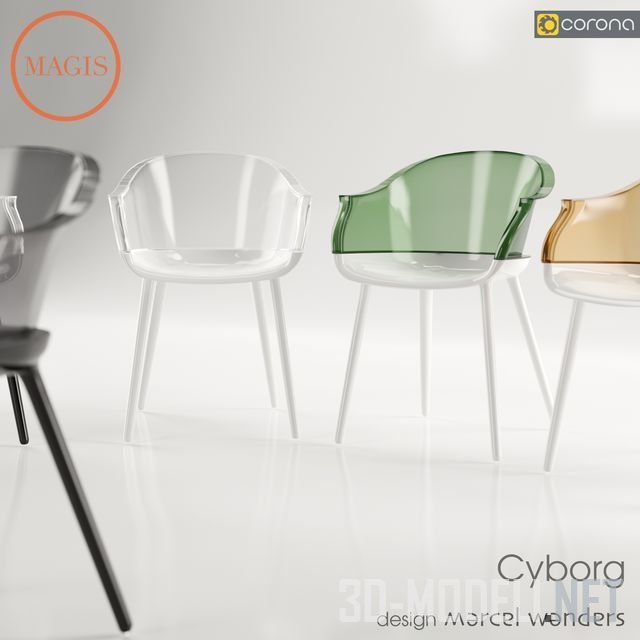 Стильный стул Cyborg, разработал дизайнер Marcel Wanders, 2011 год, для бренда Magis. Материал: рама из формованного воздухом поликарбоната. Также доступны подушки из пенополиуретана, покрытые тканью. Качественная трехмерная модель для современного пространства.