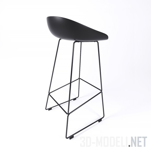 Современный барный стул с плоским черным сиденьем на тонких металлических ножках. Стильный и красивый предмет мебели для интерьера.