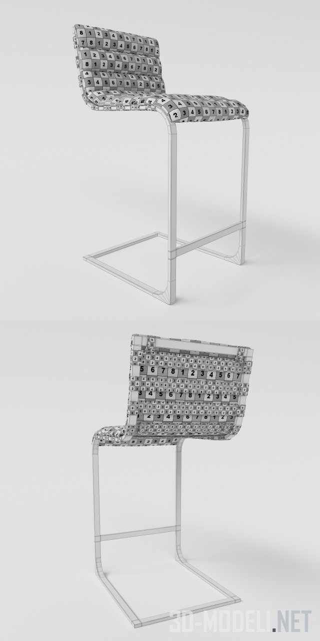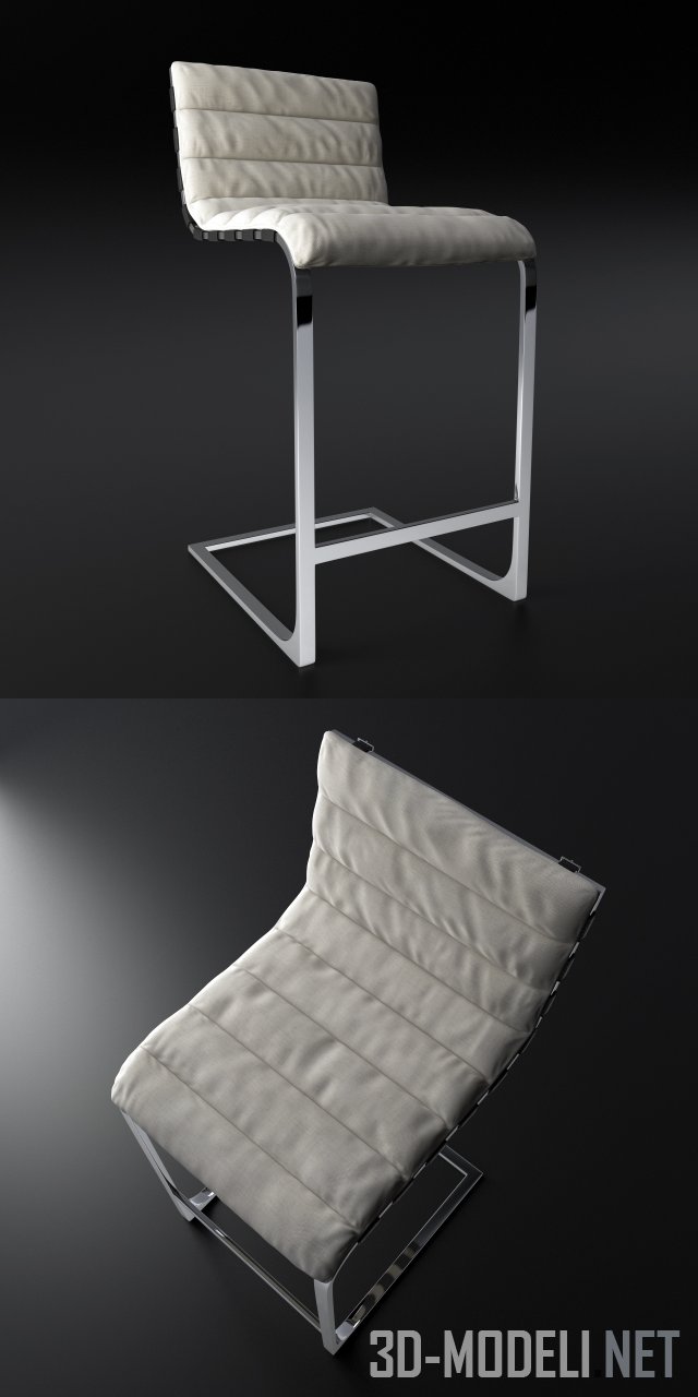 Барный стул с тканевым сиденьем, модель Oviedo от известного бренда Restoration Hardware. Стул имеет очень интересную форму в виде салазок, изогнутых под прямым углом в трех местах.