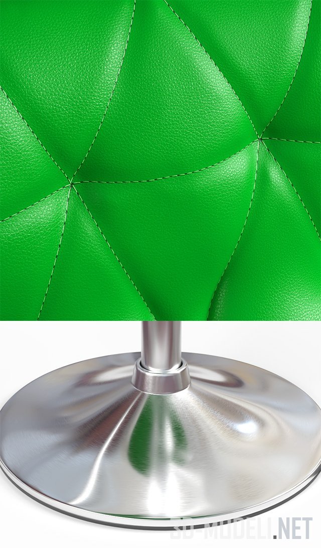 Красивый барный стул в кожаной отделке яркого цвета, модель Aero BC89 GR. Размер стула: 480 x 480 x 900 мм.
