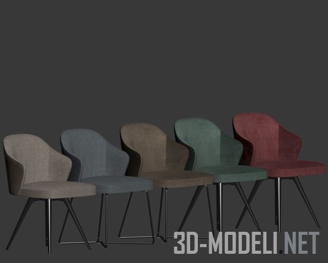 Комфортные обеденные стулья Leslie от бренда Minotti, Италия. Модели представлены в пяти вариантах обивки: коричневого, серого, голубого, зеленого и бордового цвета. Ножки могут быть традиционной формы графитового цвета или в виде тонких перекрещивающихся рамок.