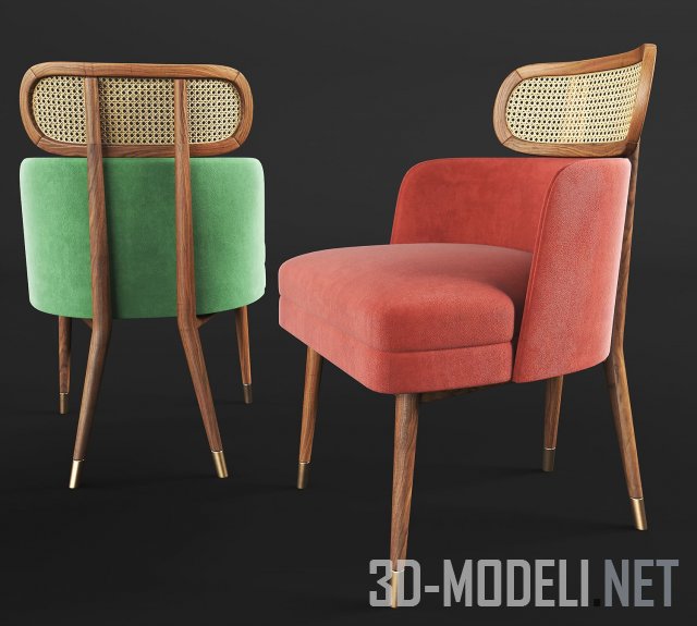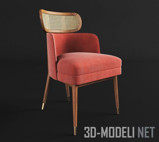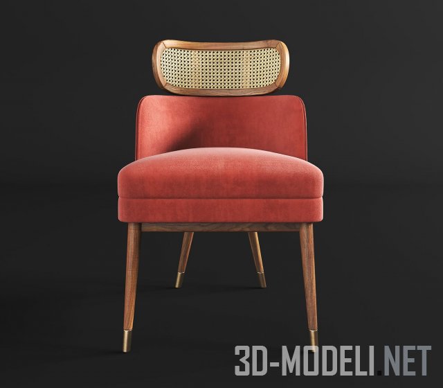 Оригинальный обеденный стул Carter. Деревянная основа и ножки с латунными наконечниками хорошо гармонируют с мягким сиденьем (яркая тканая обивка в вариантах цвета создает акцент) и плетеным подголовником.