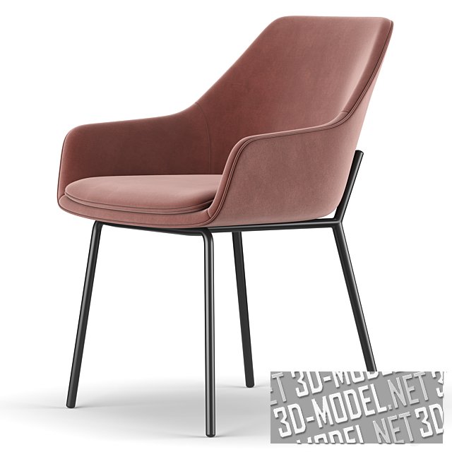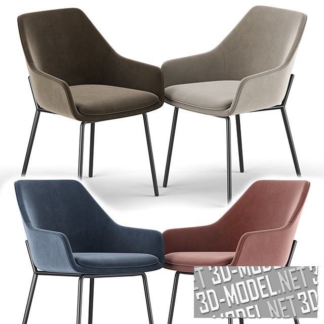 Легкие современные полукресла Haley для обеденной зоны, на черных металлических каркасах с четырьмя ножками и мнолитным блоком «сиденье\спинка\подлокотники». На сиденье дополнительно смонтирована невысокая мягкая подушка. Представлено четыре варианта обивки стульев: синий, грязно-розовый, «слоновая кость» и умбра.
