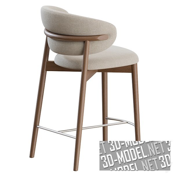 Стулья Oleandro от Calligaris на высоких деревянных ножках с небольшой хромированной металлической распоркой, мягкими сиденьем и огибающей спинкой. Габарит стула: 93х58х54см. Высота сиденья - 65см. Представлены два варианта: черные ножки с охристо-желтой кожаной обивкой и тонированное дерево с белой текстильной обивкой, с текстурой холста.
