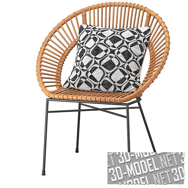 Легкий современный стул Accent от Natural Sarita с металлической рамой и плетеными из ротанга круглой спинкой и сиденьем с черно-белой подушкой. Габарит стула: 70х48х80см. Сиденье: 44х40см. Высота посадки: 42см.