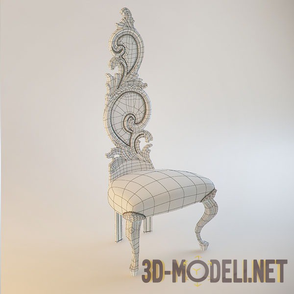 3d-модель стул с резной спинкой «Barocchina Big» от Rugiano, Италия. Роскошный предмет мебели золотого цвета, ножки стула сделаны из деревянного массива. В качестве обивки используется натуральная кожа или вельвет, как в данной модели. Высочайшее качество, реалистичность и правильная сетка отличают эту отличную модель. Текстура присутствует.