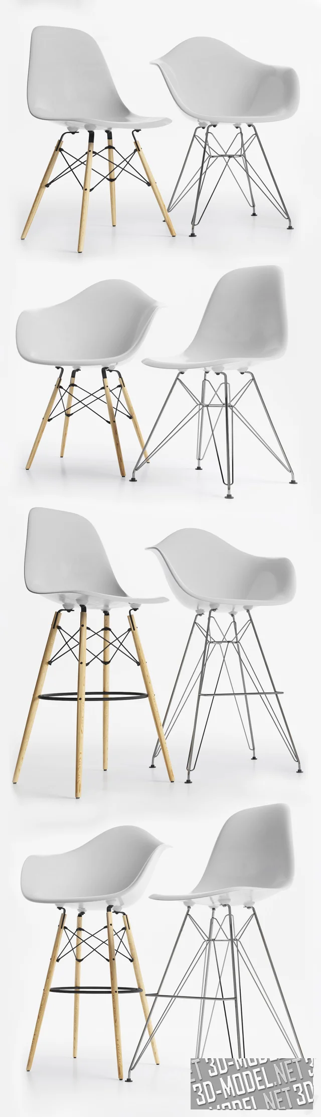 Стулья представлены в стандартной высоте сиденья и в формате барных стульев. Представлены следующие артикулы, в размерах: DSW 83,5х46х40см; DSR 81,5х46х40см; DSR 78х57х47см; DAR 83х57х47см; DSW 108х52х52см; DSR 108х52х52см; DAW 104х57х47см; DAR 107х57х47см.